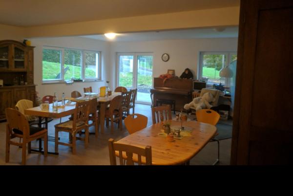 Gemeinschaftsraum mit Küche und eine Gästewohnung (Wohnzimmer, sowie Gästezimmer). Ferner ein Raum für Kreatives.
