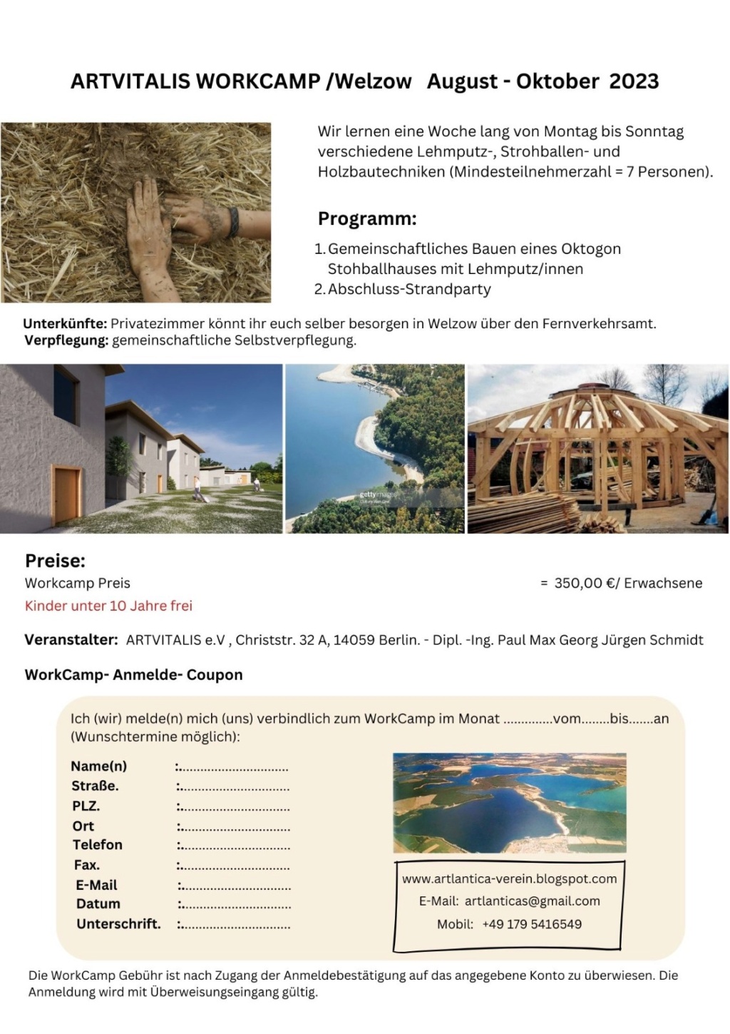 ARTlantica-2-Phasen-Entwicklungsmodell: In der ersten Phase des Projektes entsteht ein Modelldorf für ökologisches Bauen und Siedeln, um Anreize für potentielle Siedler zu schaffen, die dann in der 2. Phase in das ARTlantica-Dorf ziehen wollen. Das Modelldorf wird fünf bis sechs Holzbungalows umfassen. Was sind die Ziele und wer ist die Zielgruppe? Menschen, die in Gemeinschaft ein Leben in der Natur und mit einem sozial-ökologischen Siedlungsprojekt vorziehen und die sich für Jugendberufsbildung und Mischwald-Aufforstung interessieren. Menschen, die jetzt noch über wenig Geld verfügen, arbeiten zwei Stunden pro Tag für die Gemeinschaft und damit für das Projekt als Mieter. Man kann als Eigentümer von der Genossenschaft Bungalows erwerben in der Größenordnung von 30. bis 50.000 €, die man bezahlt, indem man mindestens 5 Genossenschaftsanteile zu je € 1.000 zeichnet. Diese Anteile kann man dann zurückgeben und sich das Geld auszahlen lassen, wenns einem nicht mehr gefällt. Weitere Zielgruppen: Von Kommunen und Land geförderte Ausbildung von Jugendlichen ohne Arbeit und/oder ausreichende Schulbildung, die unter Anleitung von Fachleuten an eine Lehre herangeführt werden und soziales Verhalten trainieren. Ausbildungsbereiche: • Holz- und Forstwirtschaft • Umweltpädagogik • Umwelt-Ranger • Bau- und Tischler-Handwerk • Solar- und Wassertechnik