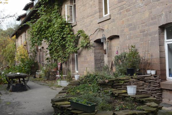 Wir leben gemeinsam auf einem 3,5 ha großen Gelände in den ehemaligen Arbeiter*innenhäusern eines Gutshofes – mitten im Weserbergland. Auf unserem Gelände befinden sich neben unseren Wohnhäusern die KulturMühle Buchhagen, eine historische Sandstein-Schleifmühle von 1867 die von dem Kulturverein Kaleidoskop e.V. bespielt wird, ein derzeit an Pferdehalter*innen verpachteter Stall sowie eine ehemalige Scheune in der eine Zimmerei, einst Kommunebetrieb, heute ungenutzt, eingerichtet ist. Alle unsere Gebäude stehen unter Denkmalschutz.