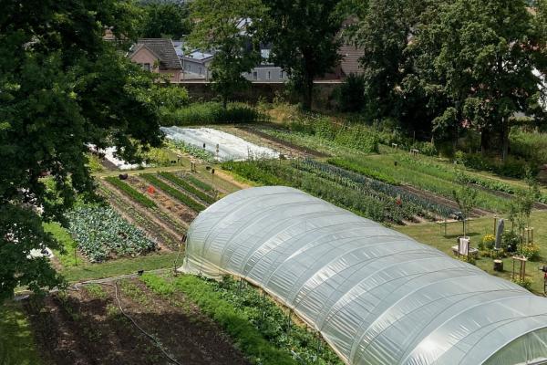 Hier entstand 2024 eine Solidarische Landwirtschaft (SoLaWi), die zum Teil aus Mieter*innen besteht.In 2024 wurden bereits 70 Gemüse-Anteile genutzt. In 2025 erhöhten wir auf 79 Anteile. Daneben planen wir einen Stadtteiltreff (Café) und viel öffentlichen Raum und Gärten, mit Kloster-, Obst- und Kirschgarten aufzubauen.