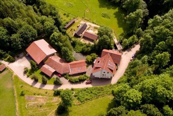 Wir haben uns das Ziel gesetzt, ein wunderschön gelegenes Gebäudeensemble im "Landschaftsschutzgebiet Brettachtal" in Gerabronn-Amlishagen wiederzubeleben. Auch wenn wir in absoluter Alleinlage wohnen (kein Durchgangsverkehr), so ist das nahe Dorf Amlishagen mit einem beeindruckenden Burg-/Schloss-Ensemble zu Fuß in nur 3 Minuten zu erreichen.