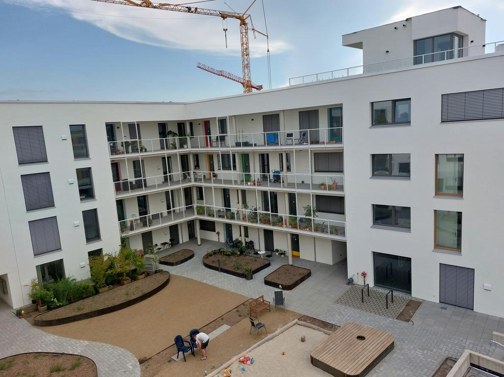 Das Haus steht in Mainz Weisenau auf einem neu erschlossenen Gebiet der Stadt Mainz. Zusammen mit zwei weiteren Baugruppen durften wir nach einem Projektvergabeverfahren das Baufeld bebauen. Insgesamt ist Platz für 62 Wohnparteien. Zwei Höfe laden zum Spielen und Verweilen ein.