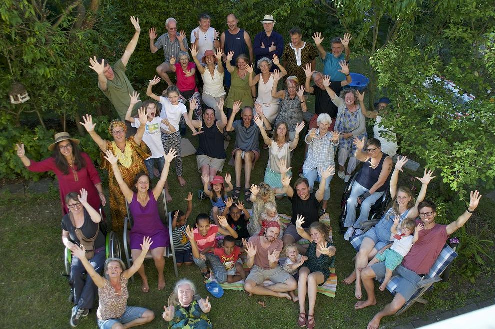 Wir sind eine Nachbarschaftsgemeinschaft mehrerer Generationen mit 50 Erwachsenen und 20 Kindern/Jugendlichen. Eine ökologisch-nachhaltige Lebensweise ist uns wichtig. Wir sind eine Genossenschaft, weil das unserem Ziel und Wunsch, solidarisch zu leben und spekulationsfrei zu wohnen, am ehesten entspricht.