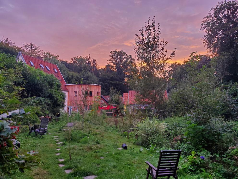 Wir sind eine Wohngemeinschaft aus Anarchist*innen, Punks,Waldmenschen, Queers, IT Nerds, Kleinkünstler*innen und Gärtner*innen, die sich zusammengefunden haben, um mit Herrschaft und gesellschaftlichen Normen zu brechen. Wir sind davon überzeugt, dass wir angesichts der Klimakatastrophe, Ausbeutung und gesellschaftlichen Problemen andere Formen des Zusammenlebens brauchen als das deutsche Spießertum. Wir wollen nicht nur wohnen. Wir verstehen uns als Care-Gemeinschaft, d.h. dass wir uns Aufgaben teilen, die zum Erhalt der Gemeinschaft und des Hauses notwendig sind (z.B. Versorgung und Haushalt, aber auch die Verwaltung). Bei uns ist es oft wuselig. Entscheidungen versuchen wir nach dem Konsensprinzip im Plenum zu treffen (klappt nicht immer). Wer hier leben möchte, sollte ein Interesse an daran und am Mietshäusersyndikat haben. Auch andere Spezies, wie Hühner und Katzen leben an diesem Ort. Vielleicht entsteht hier in Zukunft ein Lebenshof. Durch Biotope leisten wir einen Beitrag zur Artenvielfalt und durch einen Permakultur Garten wollen wir einen Teil unserer Ernährung selbst decken. Wir sind queer(-feministisch), vegan, anarchistisch und sprechen viel und angeregt über politische Themen.